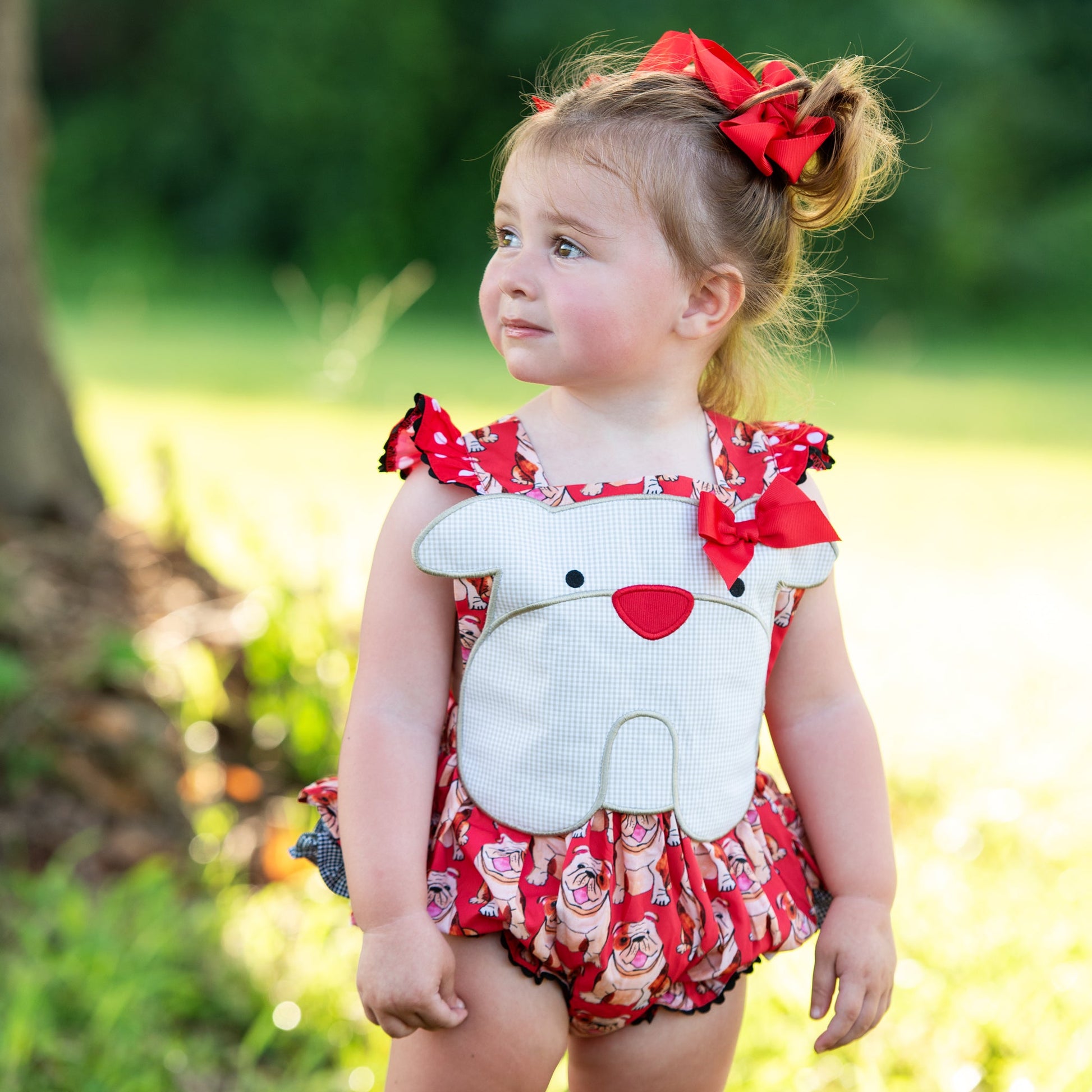 Be GameDay ready for Saturdays in the South with our Bulldog Bubble. This bubble features our custom designed Bulldog GameDay print by the talented Katherine Herrell Studio. Adjustable criss-cross straps button in the back.