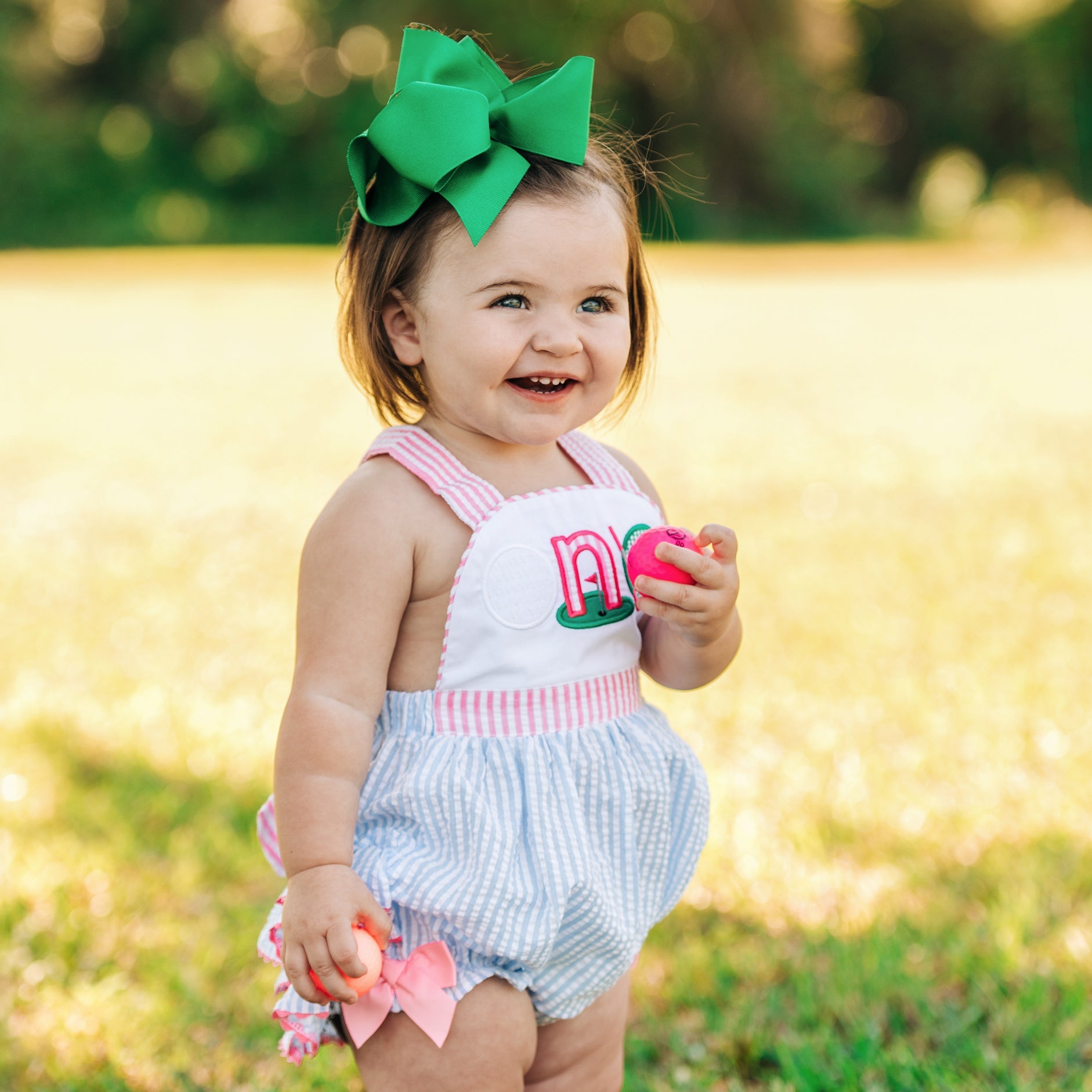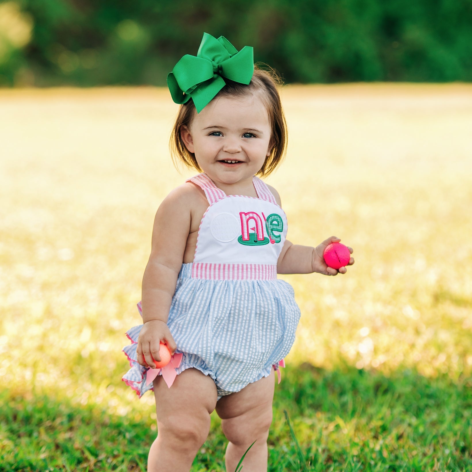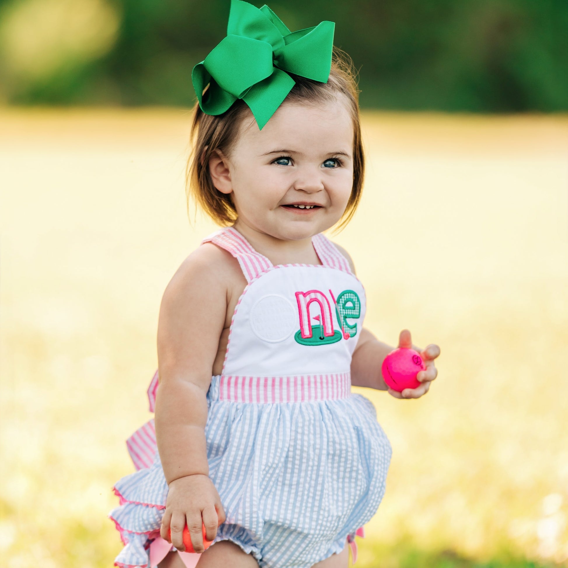 Birdies and eagles are fun but celebrating her birthday will be a hole-in-one! Over the top girly details, an applique "one" and an abundance of ruffles and bows make this the perfect first birthday outfit!